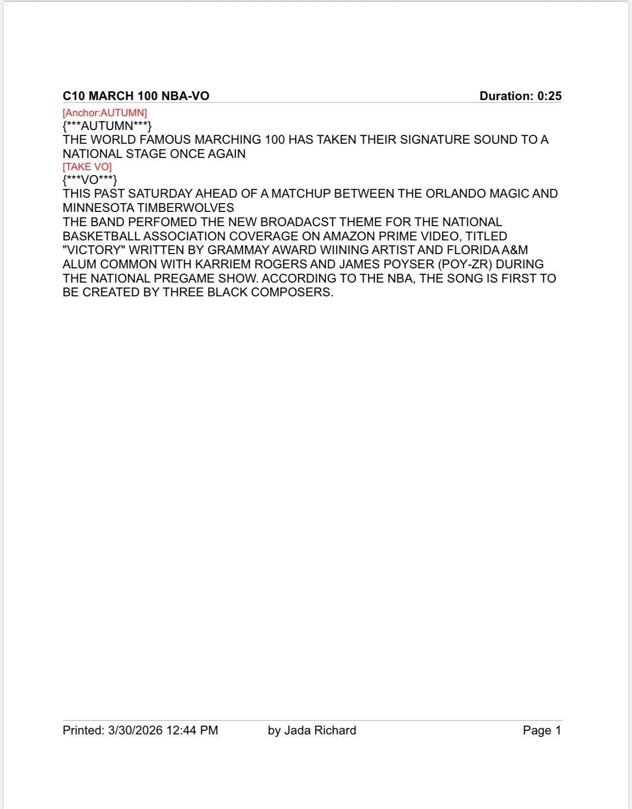 FAMU Marching 100 performing a newly composed NBA broadcast theme on a national stage before an Orlando Magic game.
